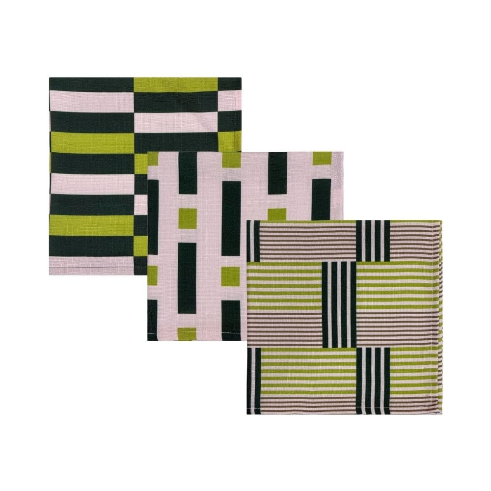 Inspiradas en la arquitectura de Richard Neutra, estas servilletas destacan por su juego de volúmenes geométricos y el contraste sutil de texturas. El equilibrio entre forma y color se refleja en tres estampados distintos que aportan carácter y modernidad a la mesa.